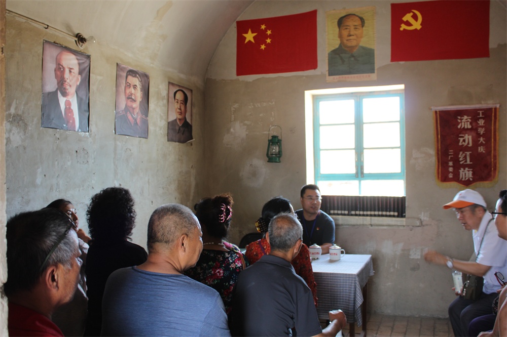 在参观土窑会议室时,新华工作队队长董智斌就坐在当初简陋的会议室里,简短的给大家讲了一节微型党课《不忘初心》,与大家交流着,“我们要继承发扬老一辈石油人‘艰苦朴素、不怕吃苦’的精神,时常忆苦思甜,了解过去、看清现在、感受变化。对比过去,沿袭继承传统的精神。让年轻一代将红色精神永不断代。”与会的老党员们,摸着以往的陈旧物品,心潮澎湃,眼眶红润着。