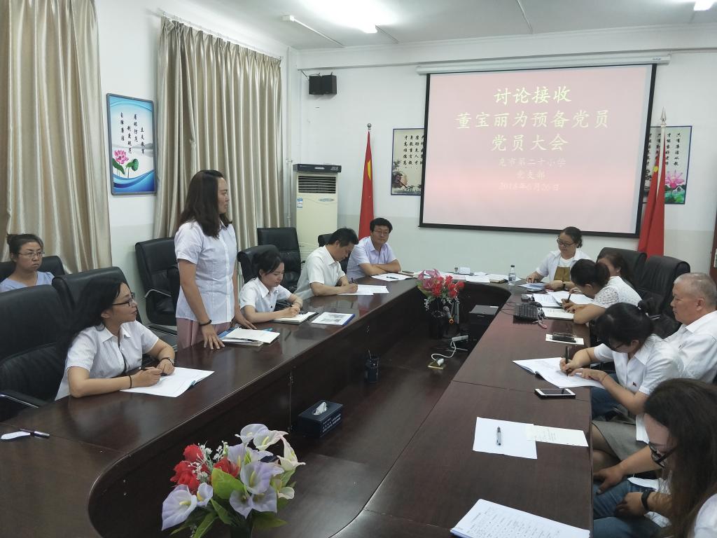 (通讯员 吴虹 方艺)6月26日,二十小学党支部召开了接收预备党员的支部大会。本次大会议题是讨论是否接收董宝丽、何云峰同志为预备党员事宜。会议由支部书记邓庆中同志主持,参会党员、入党积极分子、团员共计20人。