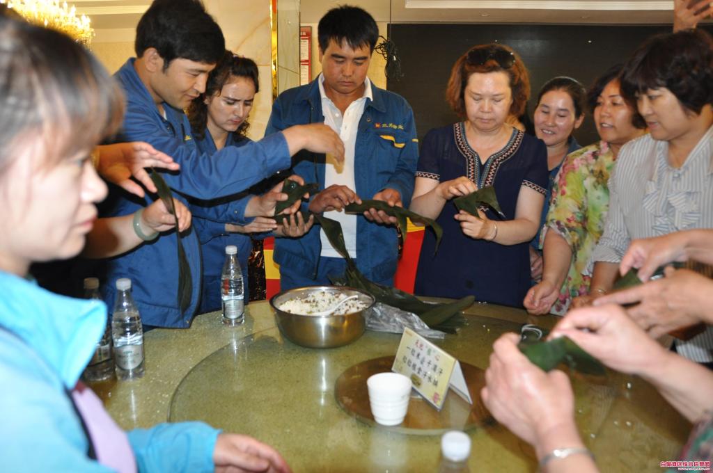 欢快的音乐,轻盈的舞蹈把活动推向了又一个高潮,大家一起包粽子,相互协作,欢声笑语一片和谐。