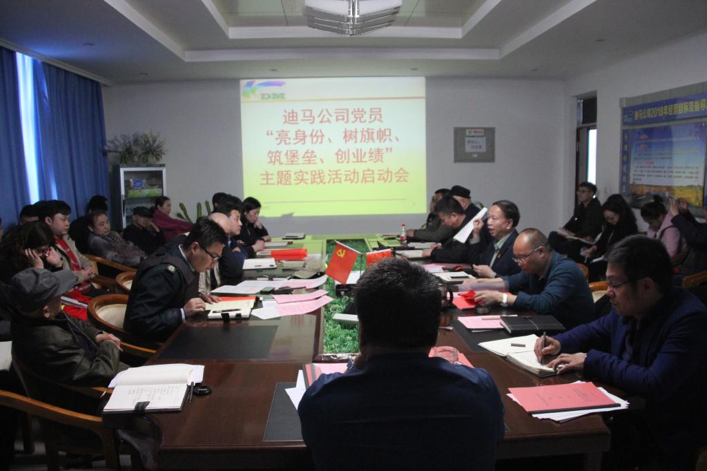 为深入学习贯彻党的十九大精神,以习近平新时代中国特色社会主义思想为指导,认真贯彻落实自治区党委九届四次全体(扩大)会议、克拉玛依市委十一届四次全体(扩大)会议和白碱滩区委五届四次全体(扩大)会议精神,促进“两学一做”学习教育常态化制度化,着力提升党员政治素质,推动全面从严治党向纵深发展。迪马公司党总支于4月3日召开党员和管理干部大会,按照新克党组〔2017〕7号《关于全面推行党支部“12371主题党日”活动的通知》要求,深入推进“12371”主题党日活动。本次主题党日活动:一是全面启动党员“亮身份、树旗帜、筑堡垒、创业绩”主题实践活动;二是严格按照习近平总书记纠正“四风”不能止步,作风建设永远在路上的新要求,签订2018年度党员(管理)干部廉洁从业承诺书,其目的是不断提高各级党员管理干部的政治站位和政治自觉,强化政治纪律、组织纪律、廉洁纪律、群众纪律、工作纪律和生活纪律,知敬畏、存戒惧、守底线,做一名清正廉洁的党员管理干部;三是集体认真学习了习近平主席在十三届全国人大一次会议闭幕会上发表的重要讲话。