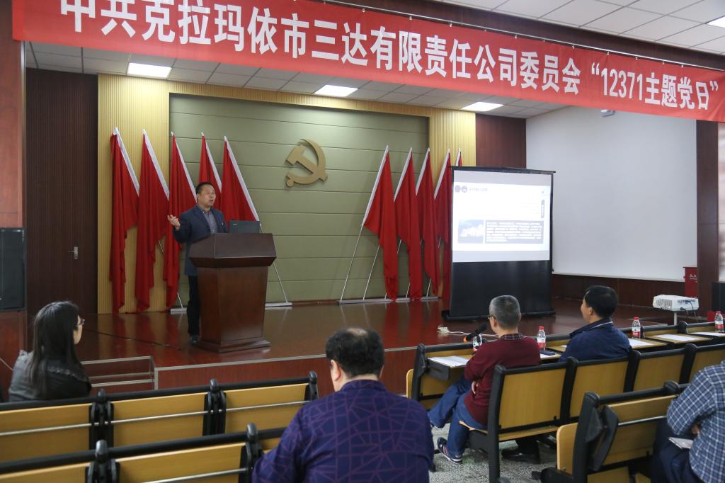 2018年3月30日下午5:00,克拉玛依市三达有限责任公司党委组织开展《三达公司党委“12371主题党日》活动,各基层支部党员、入党积极分子51人参加了此次活动,活动由公司党委副书记、纪委书记袁建全同志主持。