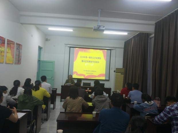 为切实加强非公有制经济组织和社会组织党组织规范化管理,全面提升非公有制经济组织和社会组织党组织党务工作者能力素质,不断增强非公有制经济组织和社会组织党组织的创造力、凝聚力和战斗力,4月28日下午,中兴路街道非公党建指导站召开2018年第一期企业例会暨社区党建指导员培训,由区委宣传部、区委组织部基层办、中兴路街道党工委、新兴组织党工委等人员参加会议,并作业务培训。各社区党委和非公企业党委负责人、党务工作者,选派单位负责人和党建工作指导员近50余人参加培训会。