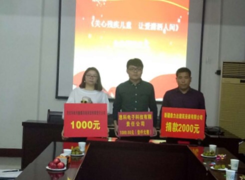 在中兴路街道非公党建“民族团结一家亲”座谈会上,新疆鼎力达建筑安装公司捐款2000元,克拉玛依市思科电子科技有限责任公司、克拉玛依鑫泰华瑞商贸有限公司各捐款1000元,并与社会组织和助残志愿者共同将爱心捐款送到生活困难的残障儿童的手中。