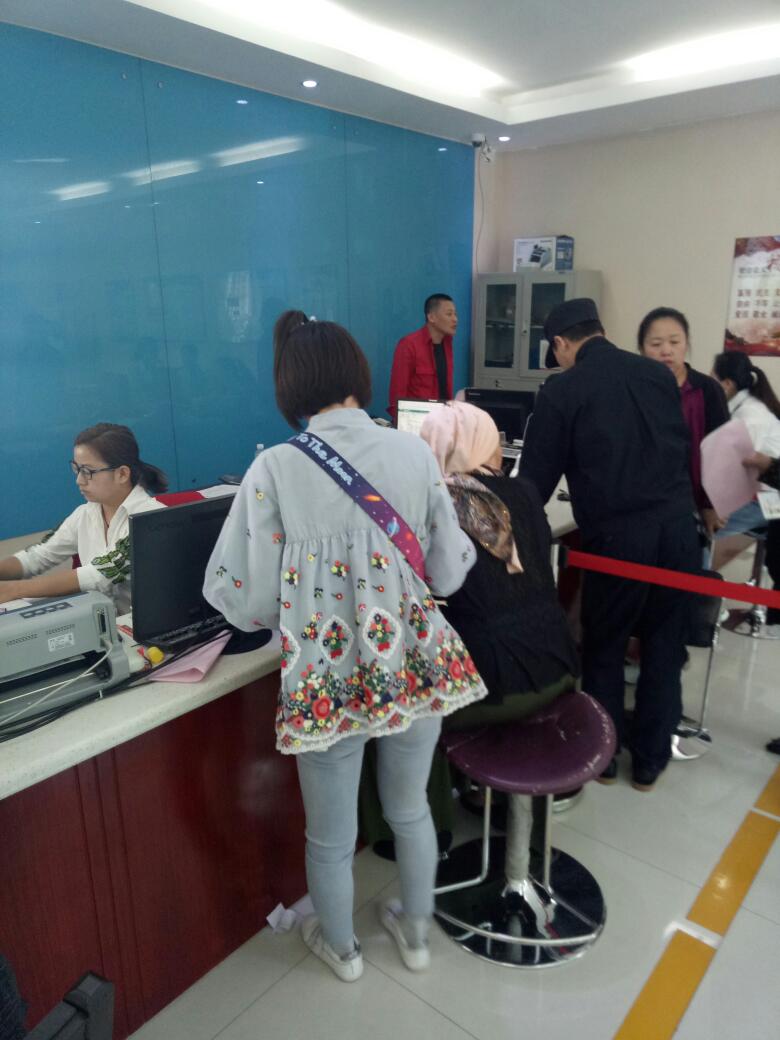 小两口在窗口忙着换卡充钱,当工作人员知道两口子和米亥古力·阿不力孜大妈是结亲家庭后,就有了开篇的这一幕。